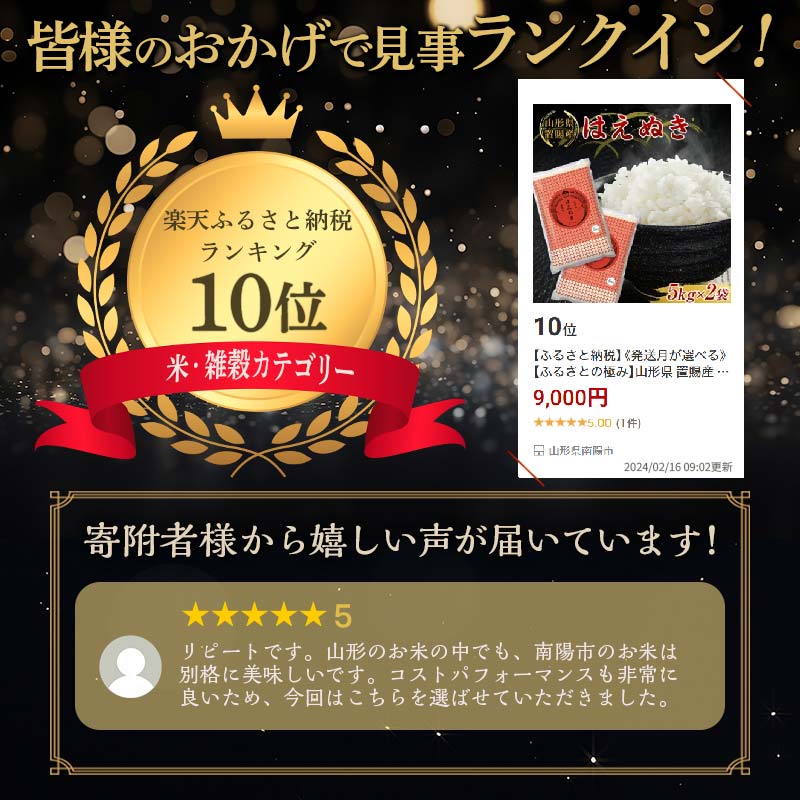 【ふるさと納税】《発送月が選べる》 【ふるさとの極み】 山形県 置賜産 はえぬき 10kg (5kg×2袋) 米 コメ 精米 山形県 南陽市 [1918]