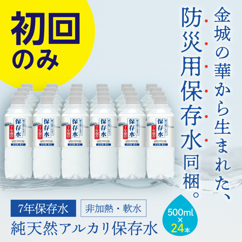 【ふるさと納税】【定期便】ミネラルウォーター(500ml)金城の華 定期コース 12回(初回のみ7年保存水同梱)定期便 天然水 飲料水 アルカリイオン 水 国産 長期保存水 長期保存 防災 備蓄 非常用 保存用 送料無料 7年保存 保存用 防災用 【043_1833】