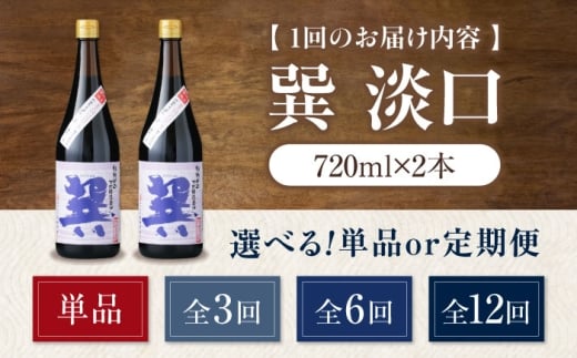 醤油 【全6回定期便】天然丸大豆醤油 巽 淡口 720ml×2本 うすくち醤油 しょう油 万能調味料 和食 たまごかけごはん TKG 冷奴 美味しい おいしい 伝統 本格的 老舗 定期便 調味料 醤油 しょうゆ セット 詰め合わせ 食べ比べ 国産 刺身 焼き魚 煮物 炒め物 料理 つけ醤油 かけ醤油 おすすめ 人気 お取り寄せ 贈答 ギフト 愛媛県大洲市/株式会社梶田商店 [AGBB017]