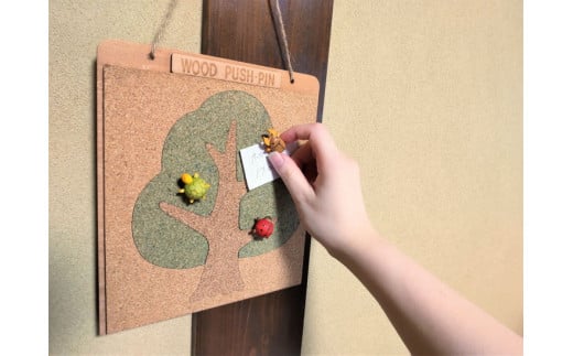 押しピンいきもの&コルクボードセット【黄】 ≪壁掛け おしゃれ 可愛い ボード 飾る 写真 掲示板≫ ふるさと納税 コルクボード 壁掛け メッセージボード コルク 押しピン 山梨県 道志村 送料無料 DSR011--02