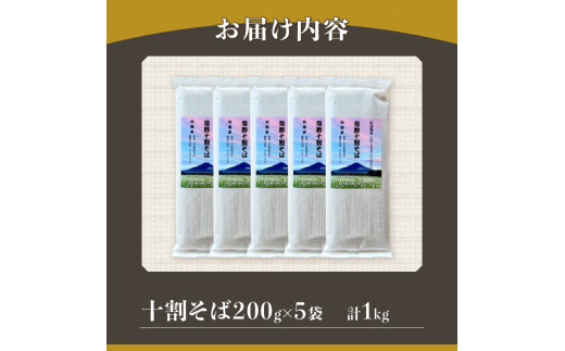忍野十割そば 乾麺200g ×5袋 計1000g ★純国産★富士北麓山梨県産石臼挽きそば粉使用 グルテンフリー 無塩・無添加 農薬不使用