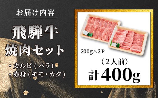 【3月発送】 贅沢! 飛騨牛 焼肉セット 400g 2人前 牛肉 和牛 肉 焼肉 BBQ 霜降り カルビ 赤身 モモ カタ 東白川村 岐阜 養老ミート