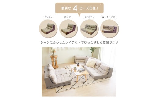 フロアソファ 4点セット グレー BO17