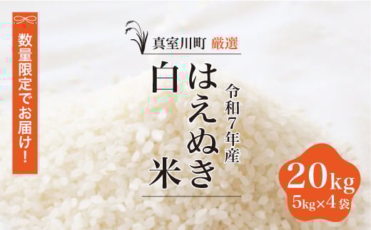 - ★数量限定★ <令和7年産 はえぬき>【白米】 20kg (5kg×4袋)<配送時期指定可> 真室川町