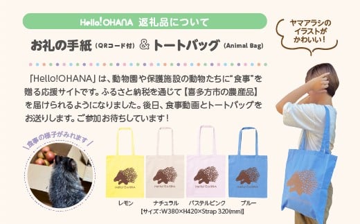 - 【動物推し活サービス】全国の動物たちに喜多方の農産品をプレゼント!〜動物デザインの「食事動画」「トートバッグ」が付いてきます〜 [カラー:レモン] 【07208-0729-A】