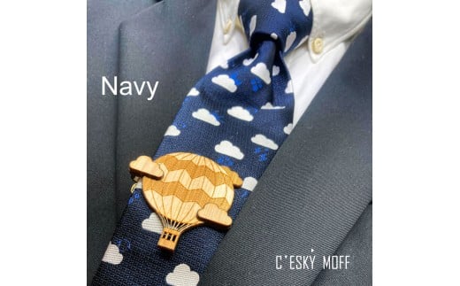 - 雲小紋柄 ネクタイ & 気球 タイピン セット プレゼント ラッピング可 おしゃれ 社会人 結婚式 贈答 新生活 生活雑貨 生活用品 FO015
