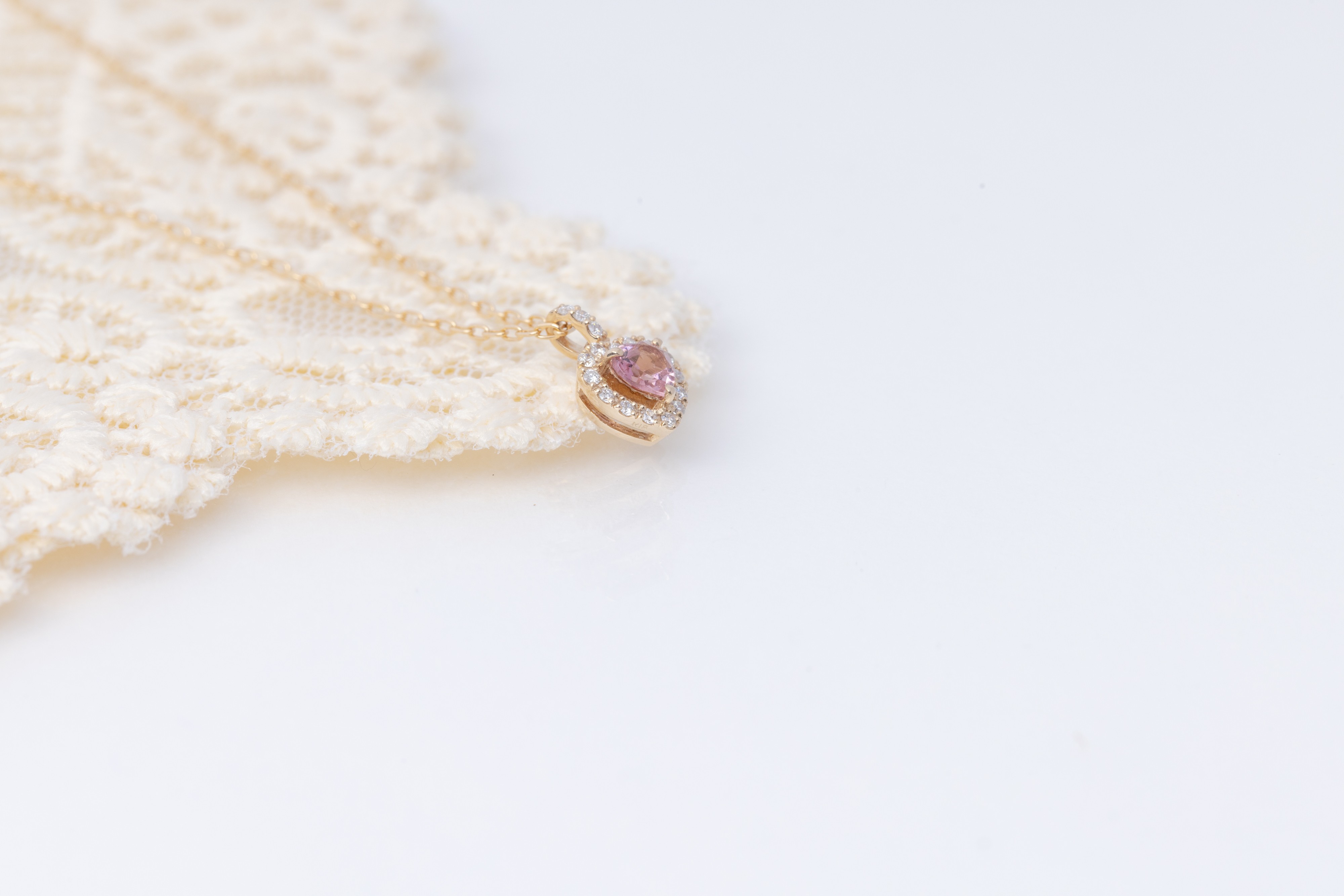 ダイヤモンド ネックレス ピンクハート K18PG 中石0.2ct サイド0.08ct ピンクトルマリン ダイヤモンド ハート K18 ピンクゴールド ジュエリー ダイヤ 18金 山梨 H-1910