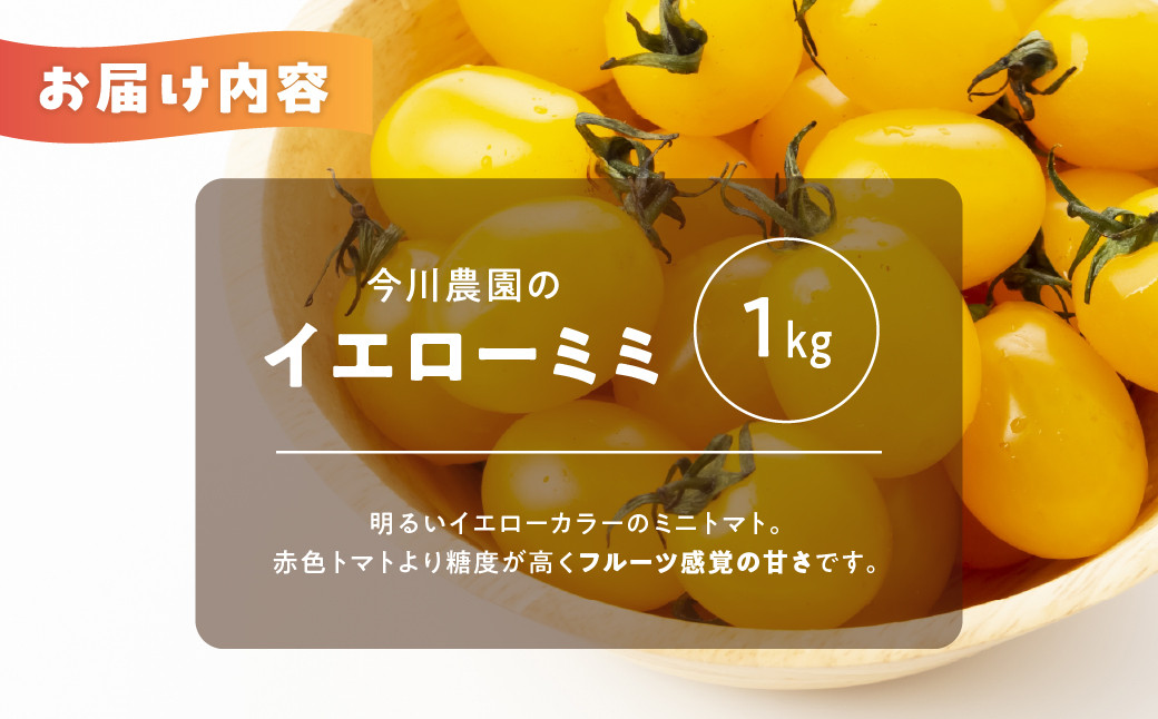 - 【ふるさと納税】【先行予約】今川農園のミニトマト イエローミミ 1kg 先行予約受付 期間限定 季節限定 野菜 国産 完熟 やさい フルーツ トマト 完熟 千果 ミニトマト イエロー プチトマト イエロートマト プチ お弁当 贈り物 おやつ サラダ 送料無料 産地直送