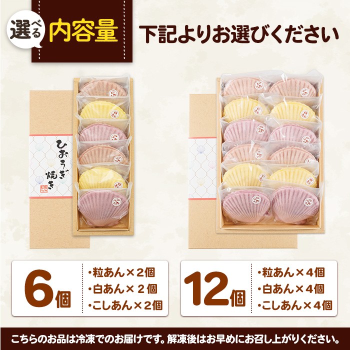 <内容量が選べる!>焼き菓子 ひおうぎ焼き (6個 or 12個・3種) 個包装 お菓子 スイーツ あんこ 粒あん こしあん 白あん おやつ 詰め合わせ 冷凍 大分県 佐伯市【JE001・JE002】【虹色ひおうぎ】