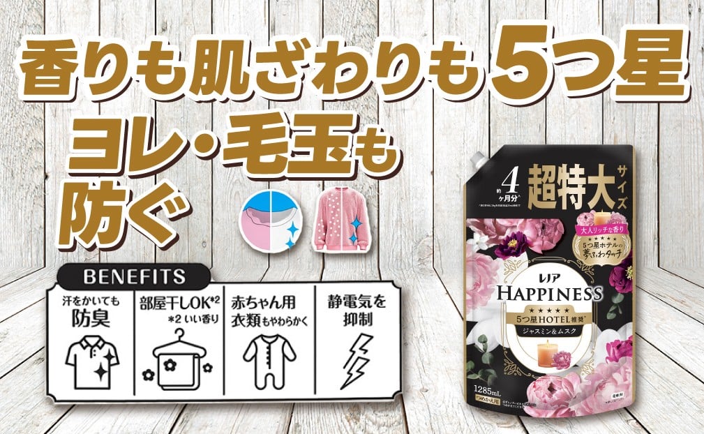 - 【25115】レノア ハピネス 夢ふわタッチ 柔軟剤 ジャスミン&ムスクの香り 詰め替え超特大1,285mL×6個