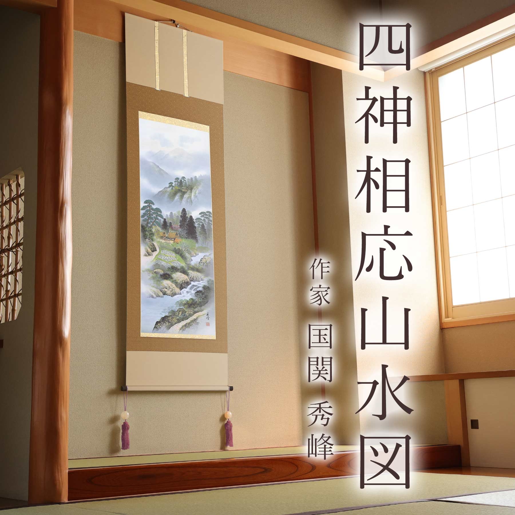 - 掛け軸「四神相応山水図」 国関秀峰 尺五立 サイズ:54.5×190cm 桐箱付 掛け軸 和室 おしゃれ 日本画 表装 床の間