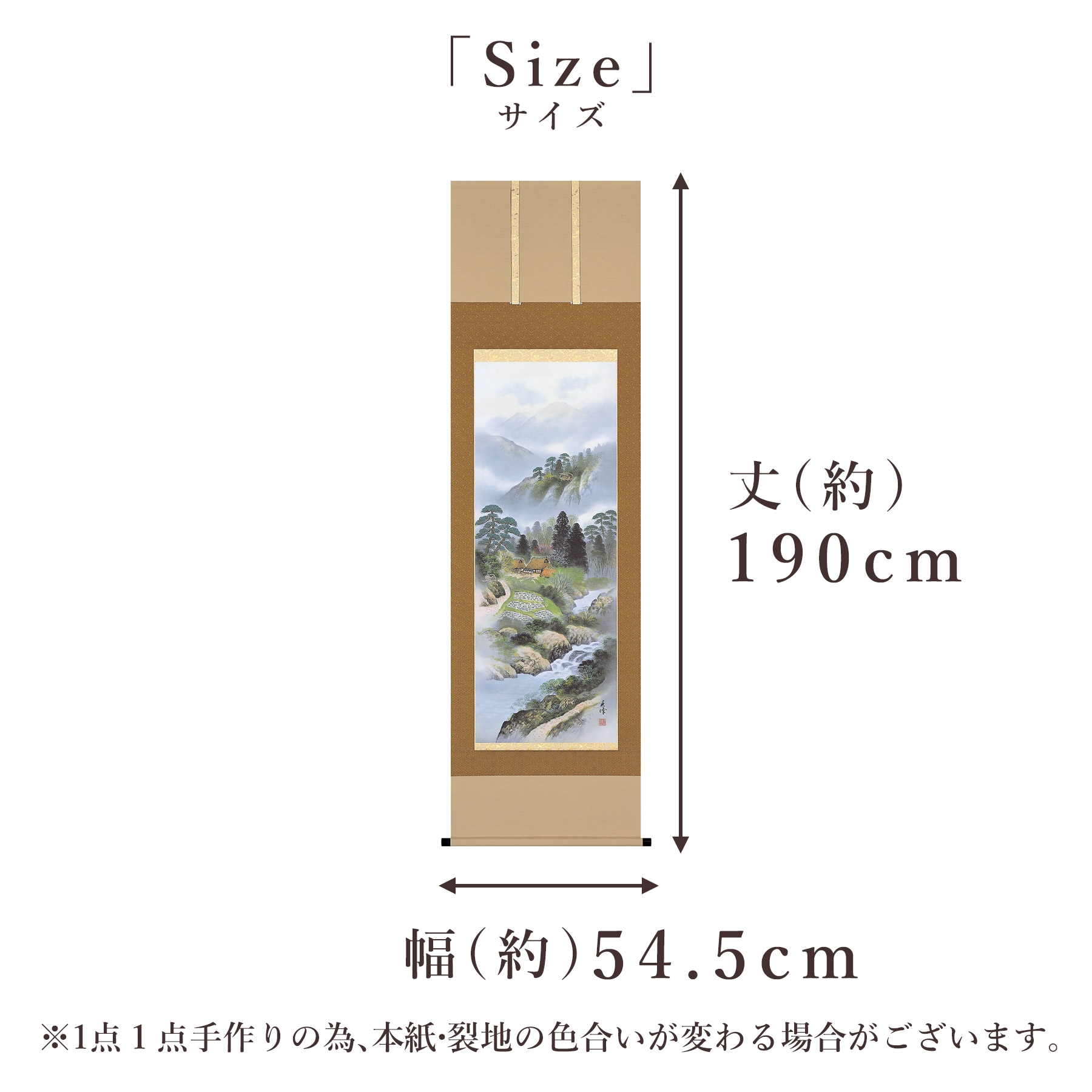 掛け軸「四神相応山水図」 国関秀峰 尺五立 サイズ:54.5×190cm 桐箱付 掛け軸 和室 おしゃれ 日本画 表装 床の間