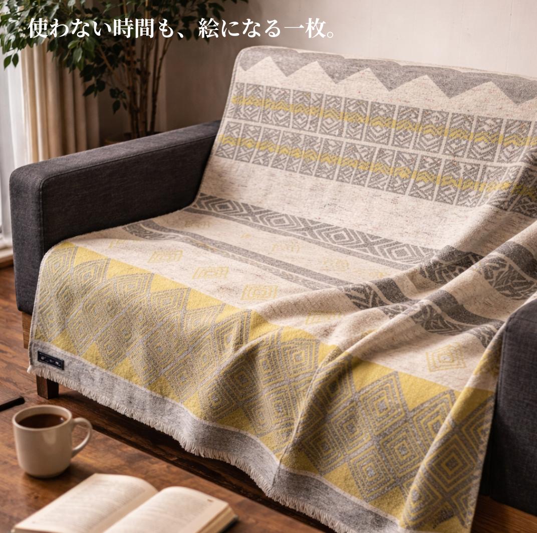 - 【一生もの】新潟・見附の肉厚ジャガード織りブランケット イエロー ジャガード 丈夫 厚め 織物 丸洗い可 インテリア おしゃれ 日本製 贈り物 祝い 誕生日 卒業 プレゼント ギフト クリスマス 新潟県 見附市