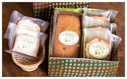 - 「おかし工房すずかけ」のギフトボックス1 【パウンドケーキ1本(フルーツ)・カットケーキ5個】