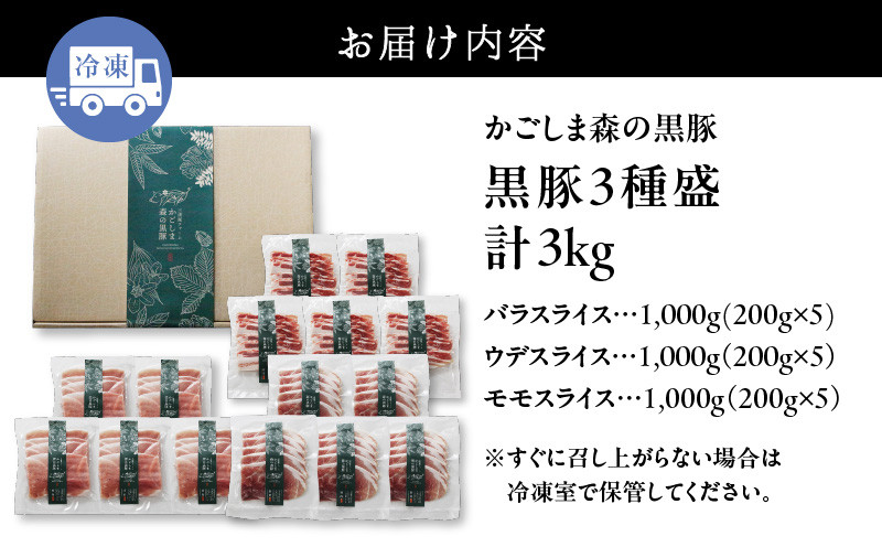 【のし対応可】「かごしま森の黒豚」3種盛り3,000g 小分け KN004-002_SKU