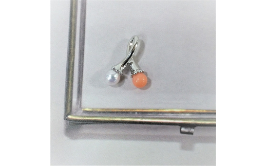 20-56伊勢志摩あこや本真珠ペンダントツイン(深海珊瑚・真珠)