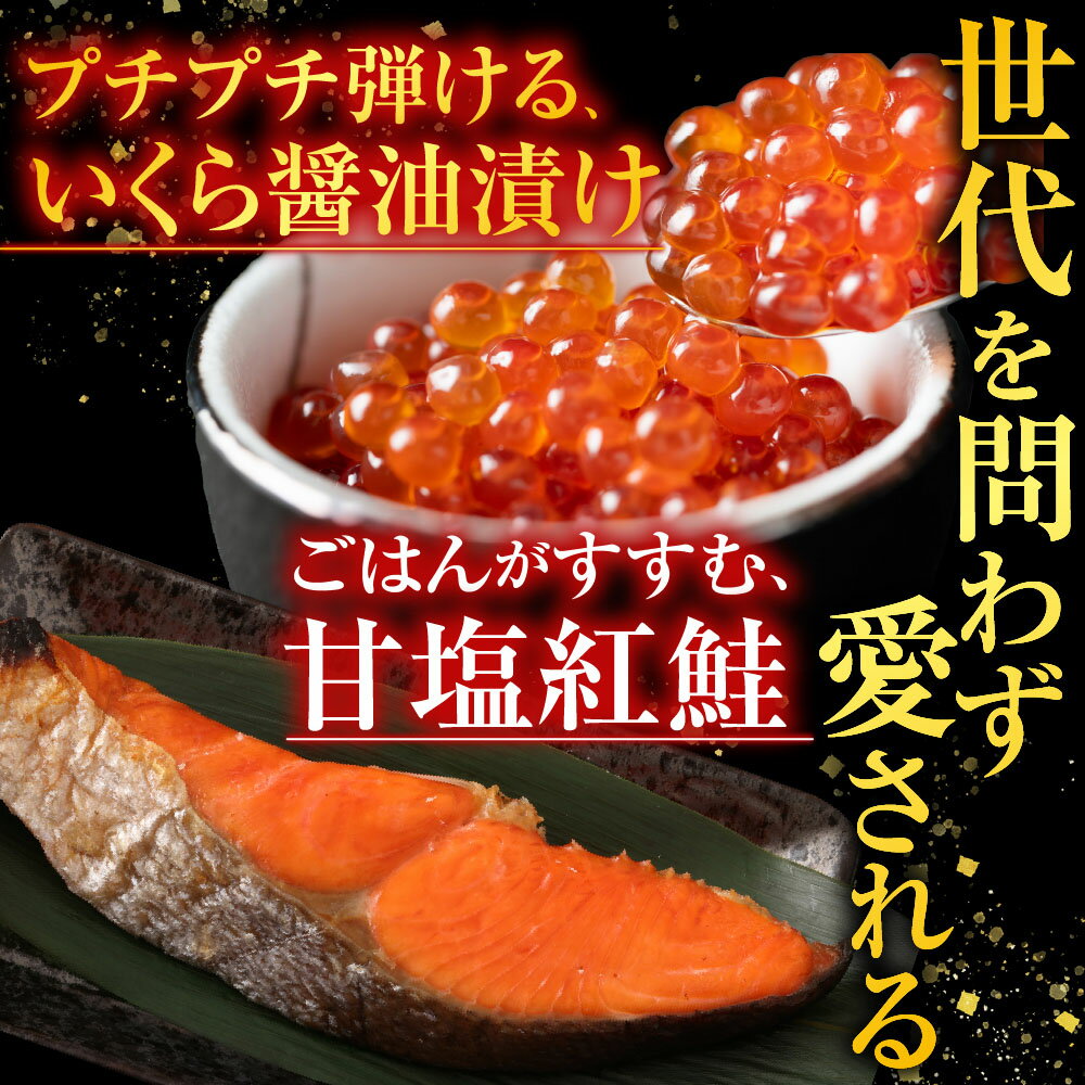 - いくら醤油漬け100g×4P、紅鮭切身5切×4P