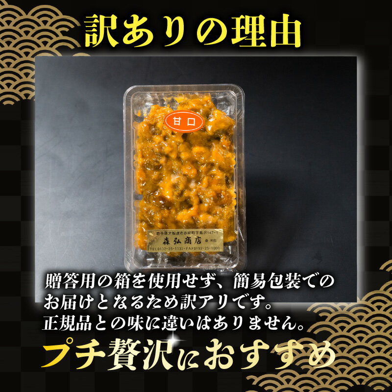 - 【ふるさと納税】 訳あり 塩うに 70g ミョウバン不使用 無着色 冷凍 うに ウニ 雲丹 寿司 汐うに 潮うに 海鮮 魚貝類 魚介類 キタムラサキウニ 国産 ウニ丼 ご飯 白米 おつまみ 三陸産 岩手県 大船渡市