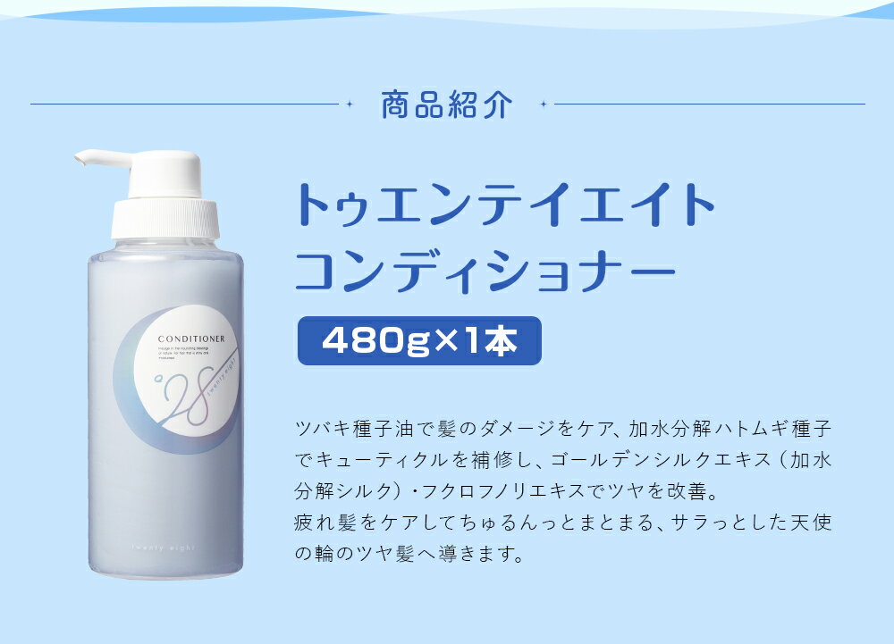 - 【ふるさと納税】トゥエンテイエイトコンディショナー 480g 1本 ツバキ種子油 加水分解ハトムギ種子 ゴールデンシルクエキス フクロフノリエキス キューティクル補修 ヘアケア ダメージケア 毛髪 疲れ髪 ツヤ髪 バス用品 美容 日用品 生活用品 福岡県 嘉麻市 送料無料