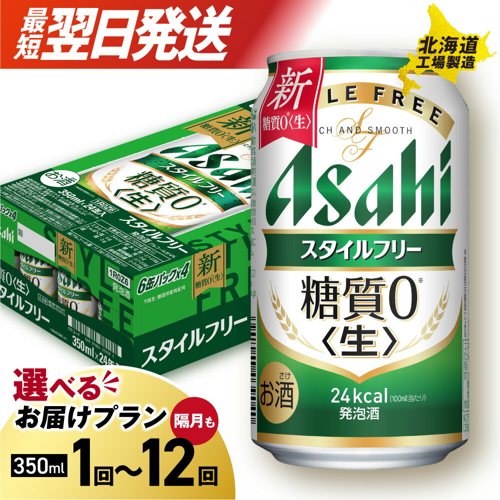 【ふるさと納税】 最短翌日発送! 【 選べる 本数 お届けプラン 】 アサヒ スタイルフリー <生> 350ml 24本 48本 ビール アサヒビール 発泡酒 北海道工場製造 糖質0 缶 ビール定期便 2ヶ月 ~ 12ヶ月 隔月 定期配送 1ケース 2ケース アサヒ 北海道 札幌市