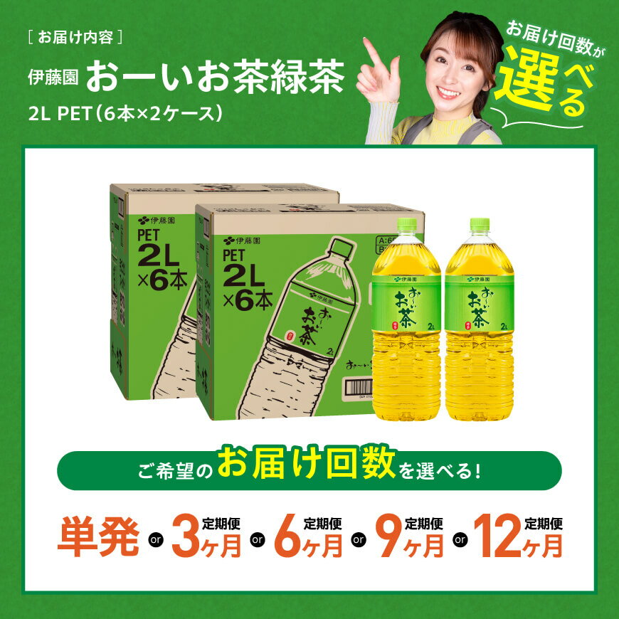 - 【ふるさと納税】※回数が選べる※ 伊藤園 お~いお茶 緑茶PET 2L×12本(6本入り×2ケース) - 送料無料 備蓄 ペットボトル セット お茶 ソフトドリンク お〜いお茶