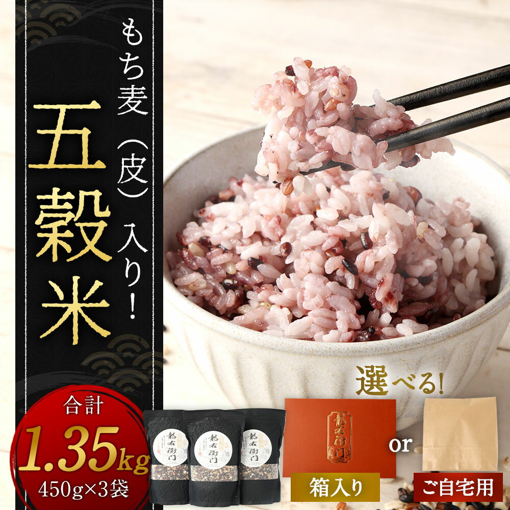 【ふるさと納税】<選べる> もち麦 (皮)入り! 五穀米 計1.35kg (450g×3袋) 【箱入り】 または 【ご自宅用】 とよはら農園 雑穀 紫黒米 うるち米 餅きび 赤米 麦 熊本県産 国産 相良村産 送料無料