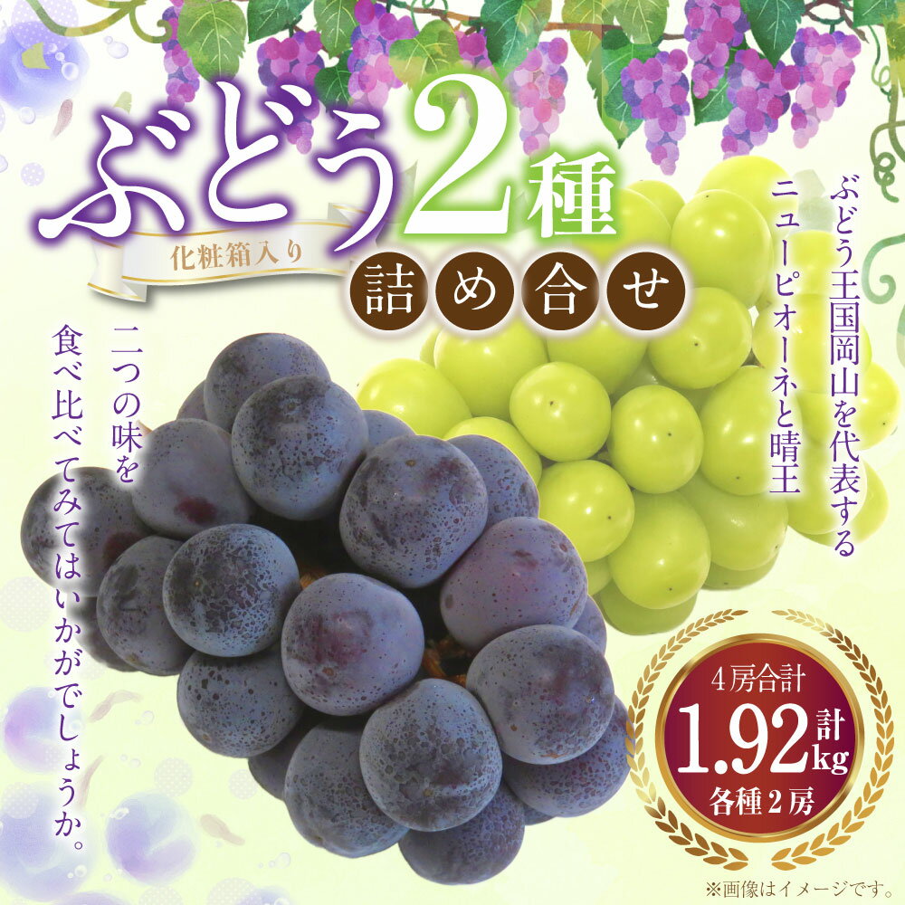 【ふるさと納税】詰合 ニューピオーネ 2房 シャインマスカット 晴王 2房(1房各480g以上)計1.92kg以上 化粧箱入り 【2026年9月上旬~10月上旬迄発送予定】 2種 セット ぶどう 葡萄 マスカット ピオーネ 種なし 果物 くだもの フルーツ 冷蔵 国産 岡山県 奈義町 送料無料