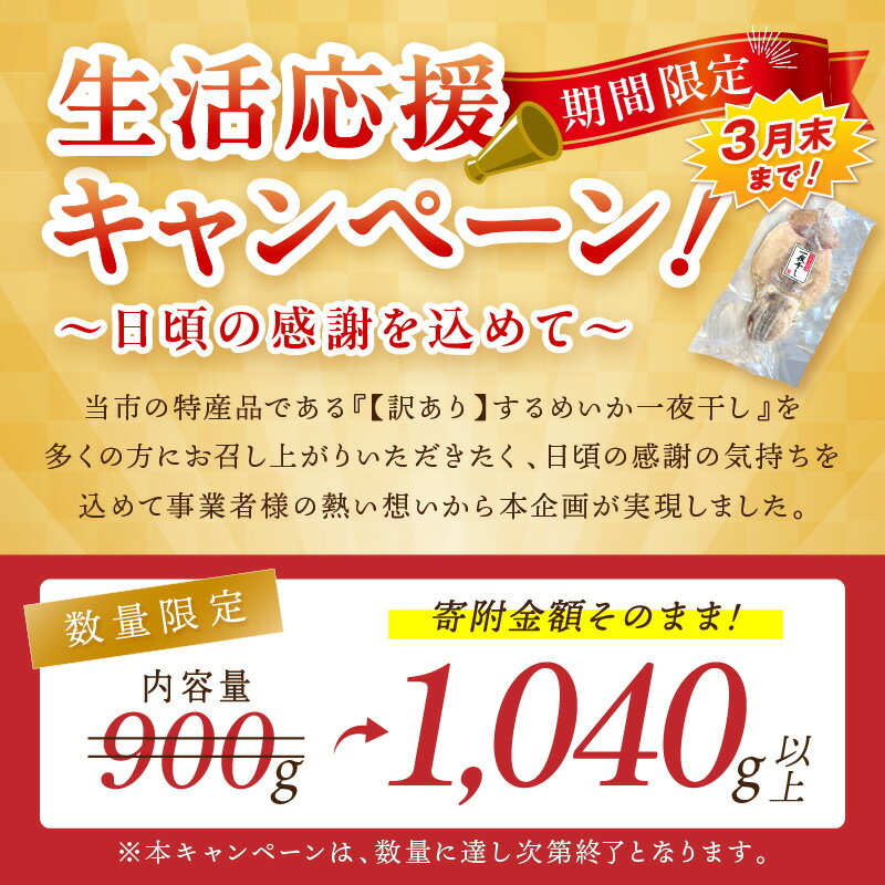 【ふるさと納税】【生活応援品】【訳あり】するめいか一夜干し (6~7枚)+1枚 計1,040g以上 【136_1992】