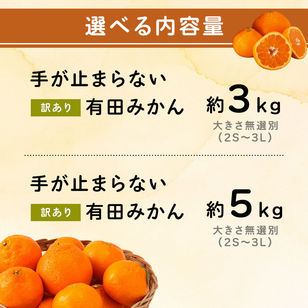 【ふるさと納税】手が止まらない 訳あり 有田みかん 約3~5kg 大きさ無選別(2S〜3L) 糖度11度以上 鳴川農園【2026年11月以降発送予定】 | みかん 蜜柑 フルーツ 果物 くだもの 食品 人気 おすすめ 送料無料 産地直送