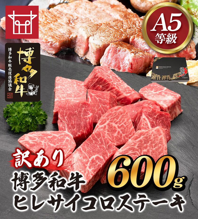 【ふるさと納税】博多和牛 ヒレサイコロステーキ 600g 久田精肉店株式会社《30日以内に出荷予定(土日祝除く)》小竹町 博多和牛 牛肉 赤身 600g A5等級 訳あり ステーキ 国産 送料無料