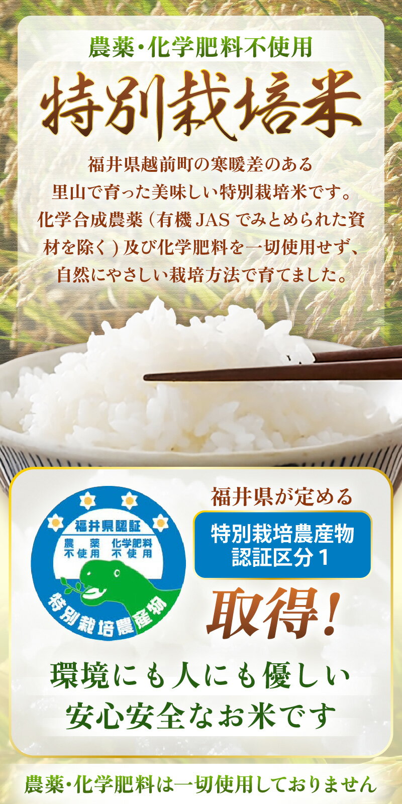 【ふるさと納税】 定期便 ≪3ヶ月連続お届け≫【令和7年産 】特別栽培米コシヒカリ5kg × 3回(合計15kg)【選べる精米方法:白米/玄米】 農薬不使用米 福井県認証区分1取得 越前町【5キロ お米 コメ 農薬化学肥料不使用 送料無料】