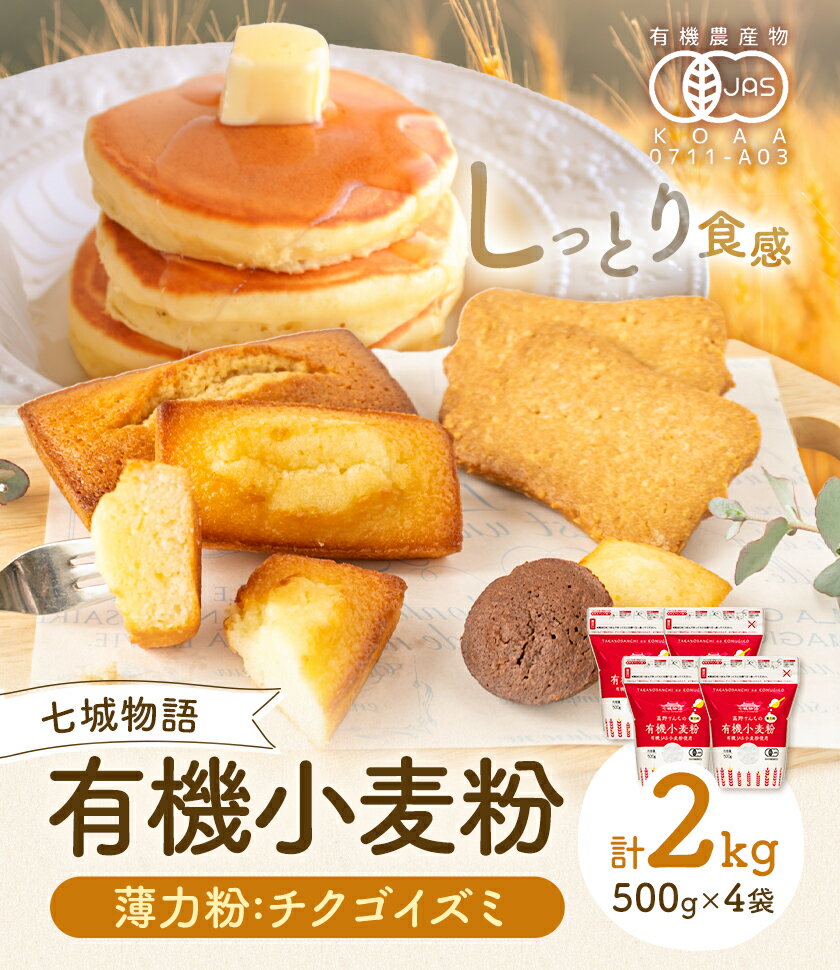 【ふるさと納税】七城物語 有機小麦粉 薄力粉 チクゴイズミ 合計2kg 500g×4袋 株式会社有機農場《30日以内に出荷予定(土日祝除く)》熊本県 菊池市 七城物語 有機小麦粉 小麦粉 国産 九州産 熊本県産
