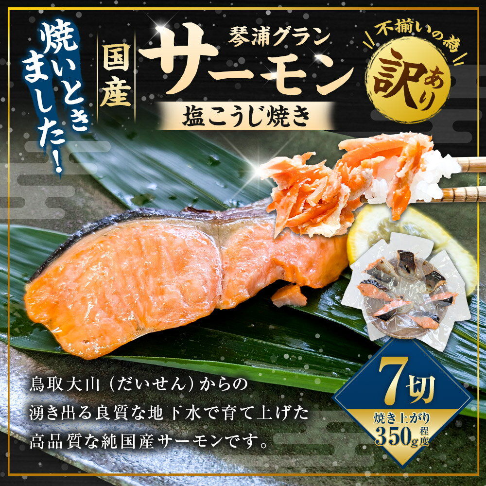 - 【ふるさと納税】【不揃いのため訳あり】国産 とっとり琴浦グランサーモン焼いときました 焼魚 7切 塩焼き 大きさ不揃い 焼き上がり350g程度 個包装 レンチン サーモン 鮭 サケ さけ しゃけ シャケ 塩こうじ 塩麴 切身 切り身 冷凍 鳥取県産 兵庫県 新温泉町 送料無料