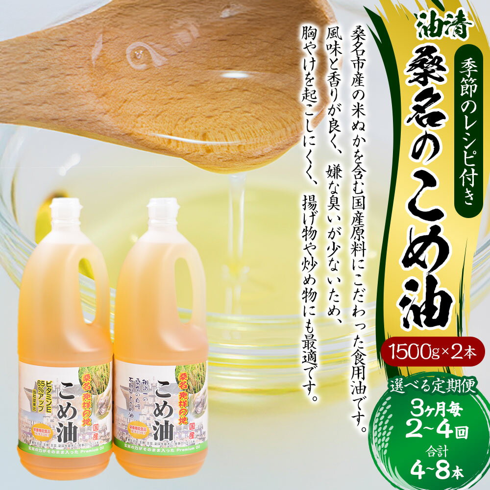 【ふるさと納税】<選べる定期便>油清 桑名のこめ油 1回あたり計3kg(1.5kg×2本入り) 桑名のこめ油季節のレシピ付き 3ヶ月毎 2回 / 3回 / 4回 米油 油 あぶら 米ぬか ビタミンE 食用油 調味料 揚げ物 炒め物 保健機能食品 健康 国産 三重県 桑名市 送料無料