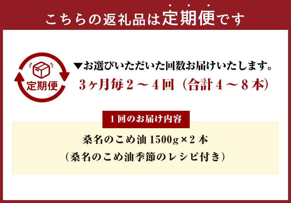 - 【ふるさと納税】<選べる定期便>油清 桑名のこめ油 1回あたり計3kg(1.5kg×2本入り) 桑名のこめ油季節のレシピ付き 3ヶ月毎 2回 / 3回 / 4回 米油 油 あぶら 米ぬか ビタミンE 食用油 調味料 揚げ物 炒め物 保健機能食品 健康 国産 三重県 桑名市 送料無料
