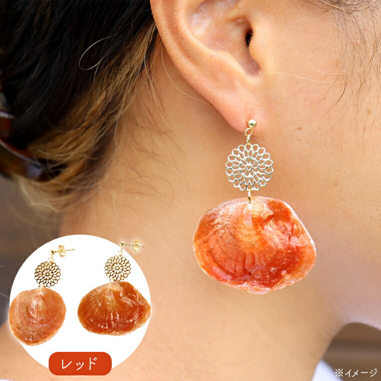 - 【ふるさと納税】 ピアス イヤリング アクセサリー ジュエリー ナミマガシワ 貝 ハンドメイド 手作り レッド イエロー 赤 黄 樹脂 コーティング 女性 レディース プレゼント ギフト 誕生日 記念日 ファッション おしゃれ かわいい 雑貨 おすすめ サージカルステンレス
