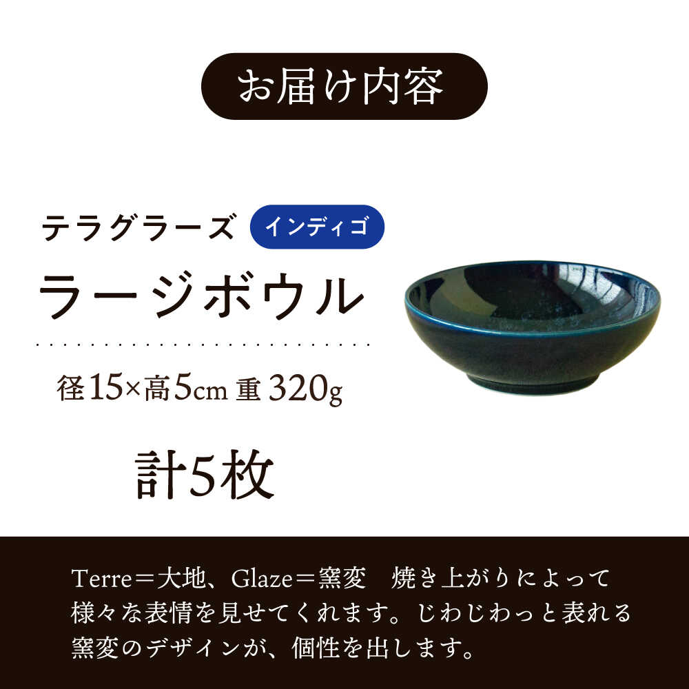 - 【ふるさと納税】【美濃焼】 テラグラーズ ラージボウル インディゴ 5客揃 瑞浪市 / アワサカ 食器 鉢 ボウル[AZAD006]
