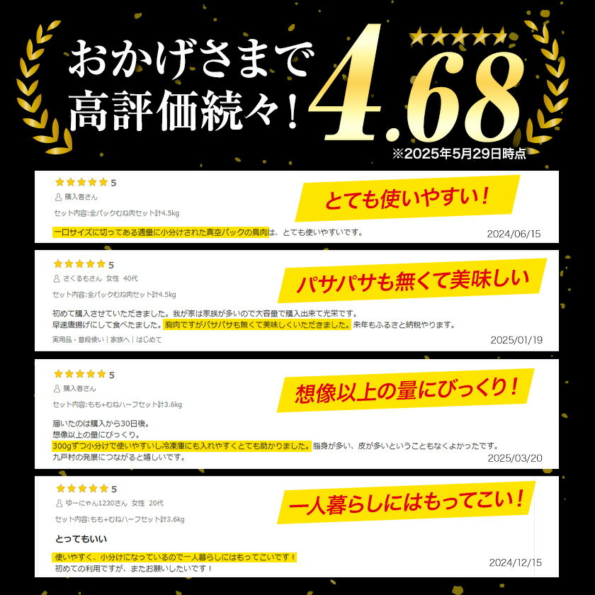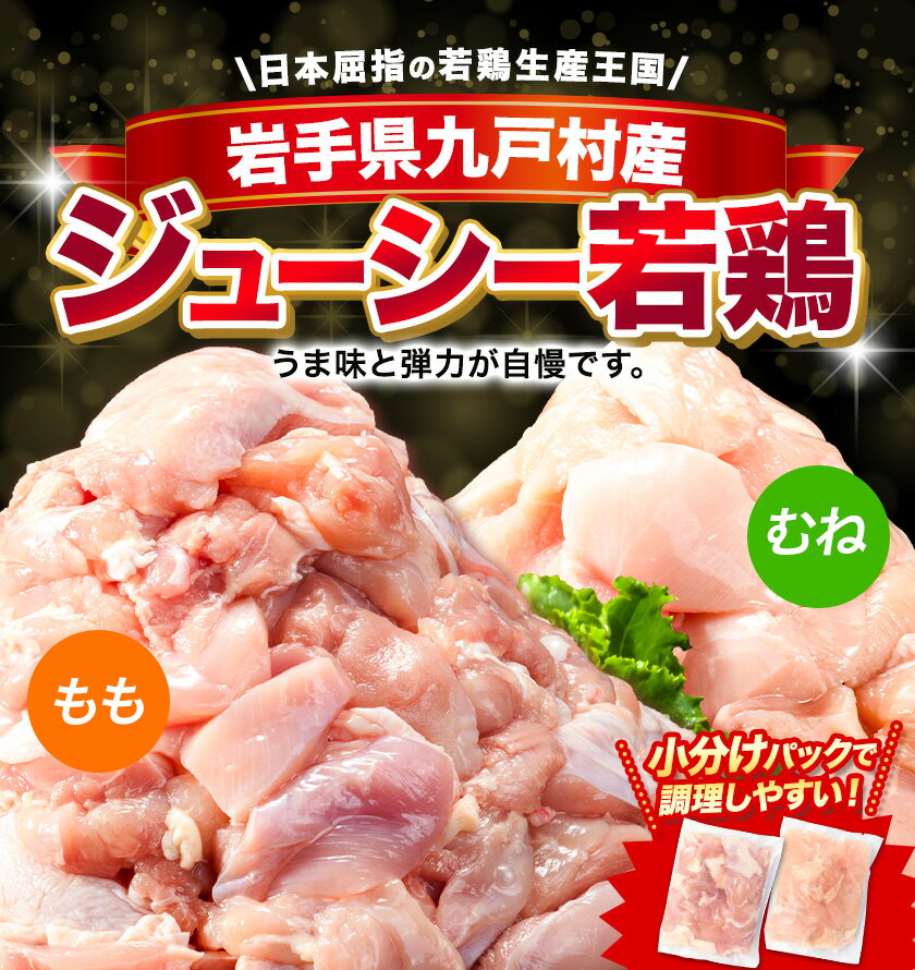【ふるさと納税】岩手県産 ジューシー 若鶏 選べる3種 もも肉 + むね肉 ハーフ 3.6kg もも肉3kg むね肉4.5kg 九戸村産 国産 小分けパック カット済み 唐揚げ とりむね 鳥もも肉 小分けバック 鳥 とりもも 冷凍 大容量 もも肉 簡易包装 ふるさと納税 肉 とり とり肉 1.2kg