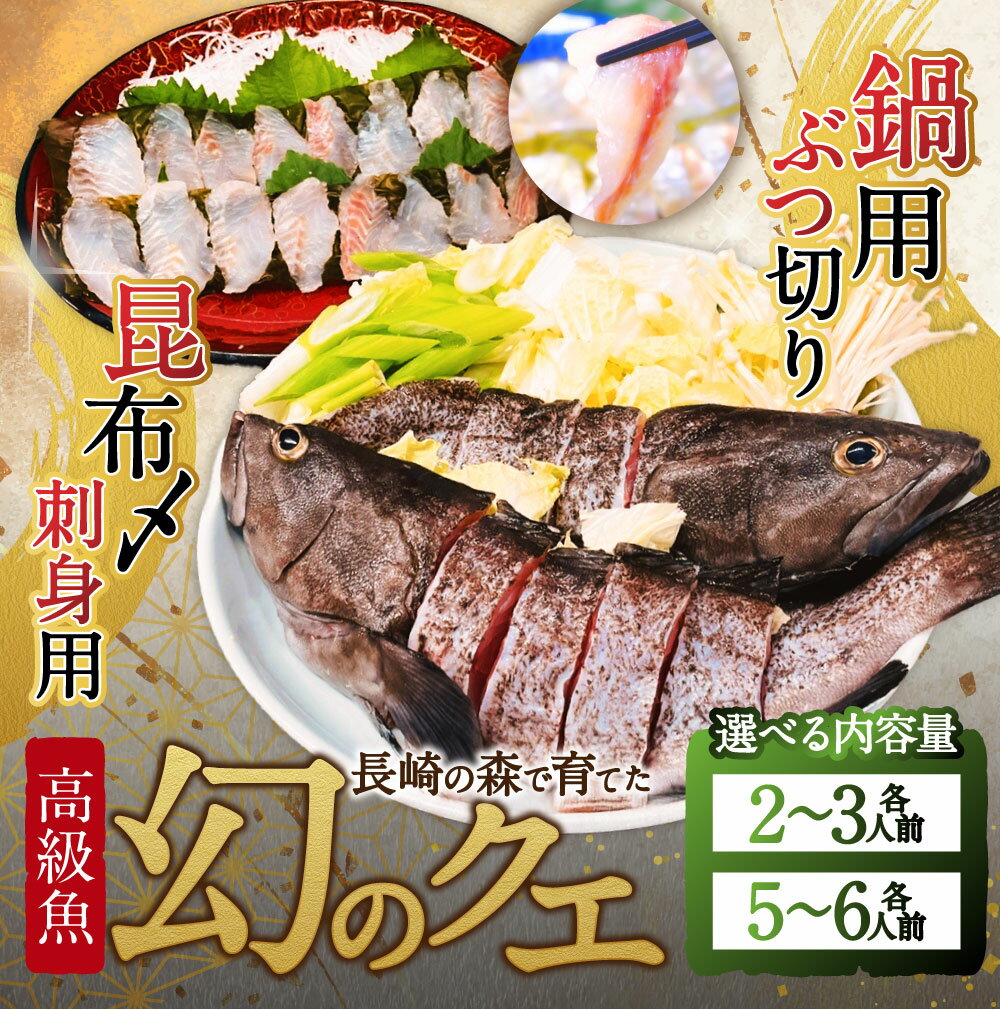 【ふるさと納税】<選べる内容量>長崎の森で育てた『幻のクエ』 昆布〆刺身用・鍋用ぶつ切りセット 頭・骨付き 各2〜3人前【ハーフセット】 / 各5〜6人前 くえ 高級魚 海鮮 海産物 魚介類 冷蔵 長崎県 長崎市 送料無料