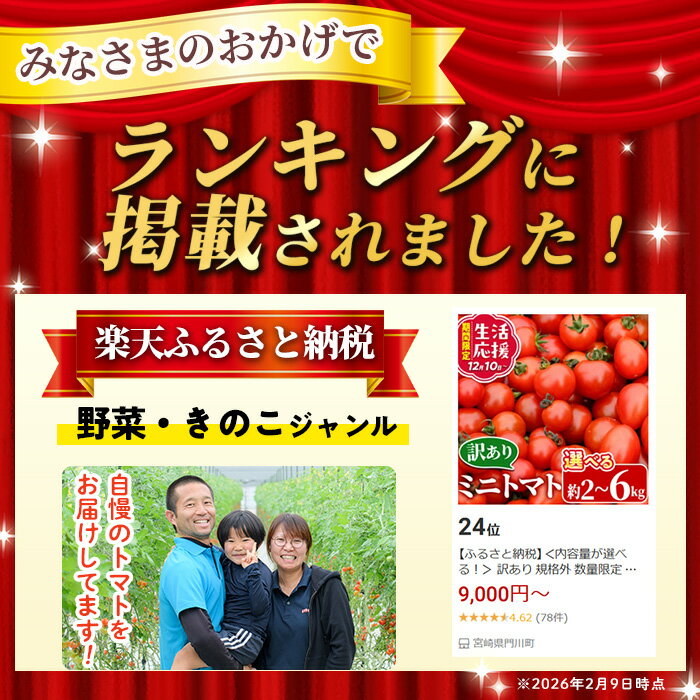 - 【ふるさと納税】<内容量が選べる!> 訳あり 規格外 数量限定 門川町産 ミニトマト (計2~6kg) 期間限定 生活応援 フルーツトマト とまと 野菜 ミックス 生 旬野菜 冷蔵【X-9・X-10・X-11・X-8】【いけとも農園】