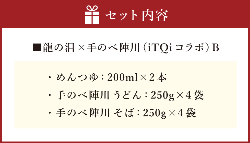 - 【ふるさと納税】龍の泪×手延べ陣川(iTQiコラボ)B めんつゆ(200ml×2本) 手のべ陣川うどん(250g×4袋) 手のべ陣川そば(250g×4袋) 蕎麦 麺類 かつお風味 セット 長崎県 長崎市 送料無料