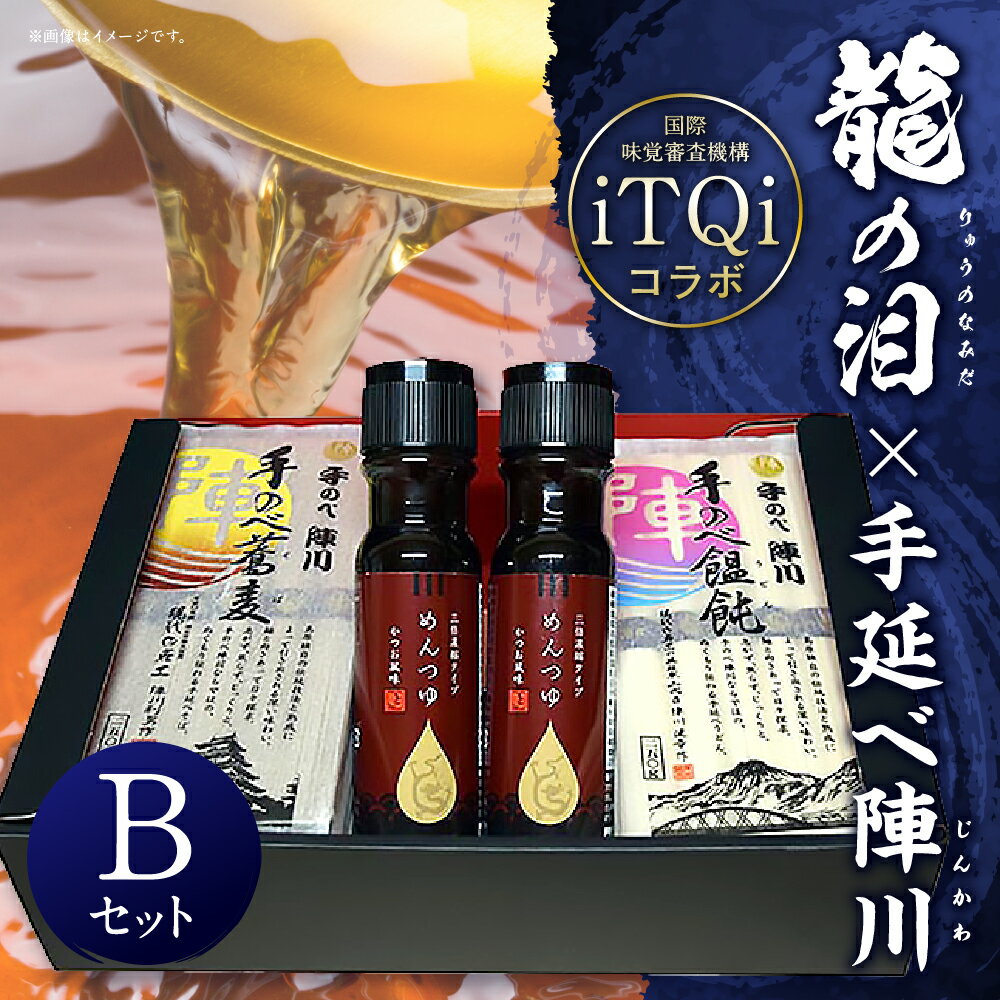 【ふるさと納税】龍の泪×手延べ陣川(iTQiコラボ)B めんつゆ(200ml×2本) 手のべ陣川うどん(250g×4袋) 手のべ陣川そば(250g×4袋) 蕎麦 麺類 かつお風味 セット 長崎県 長崎市 送料無料