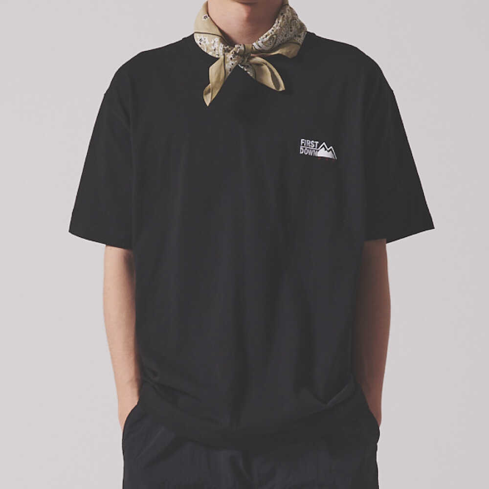 【ふるさと納税】【選べるサイズ】Tシャツ ショートスリーブ Tシャツ BLACK アウトドア シンプル 半袖 Tシャツ FIRST DOWN USA メンズ レディース ユニセックス トップス クルーネック 丸首 綿100% コットン オーバーサイズ 大きめ 人気 岐阜市 / 水甚[ANHZ020〜ANHZ024]