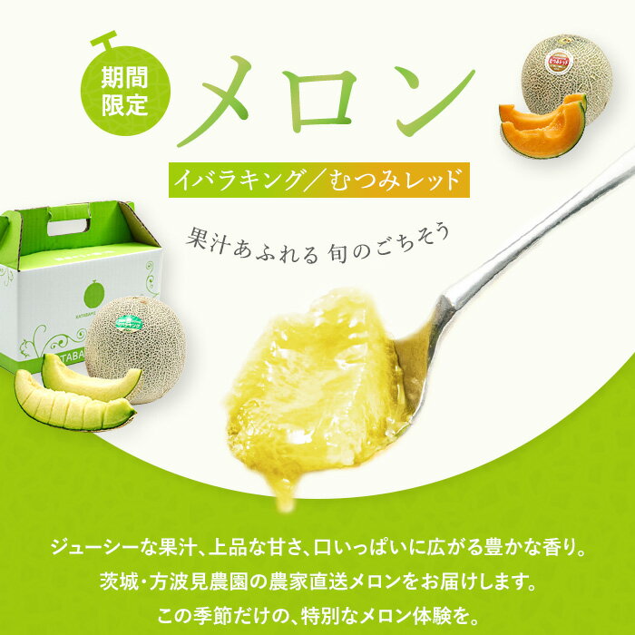 【ふるさと納税】 先行予約! メロン めろん \ 生産量日本一 / イバラキング 10000円 以下 青肉 1玉 〜 5玉 1.2kg 〜 4.5kg 甘い フルーツ 果物 旬 大玉 絶品 産地直送 高級 おすすめ 人気 国産 ジューシー ギフト プレゼント 期間限定 茨城 鉾田市 方波見農園