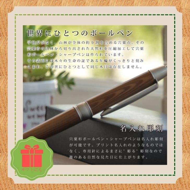 【ふるさと納税】宍粟杉 ボールペン 2本(名入れ 彫刻可能)オリジナル 木製 ネーム 文字入れ お祝い 贈答 プレゼント 卒業 入学 合格 進学 兵庫県 宍粟市 しそうし RS3