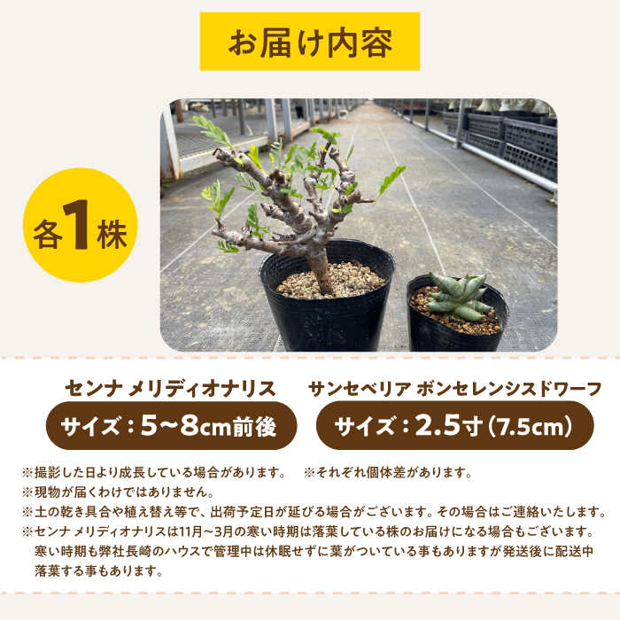 - 【ふるさと納税】センナ メリディオナリス & サンセベリア ボンセレンシスドワーフ 各1株 Senna meridionalis & sansevieria boncellensis dwarf 長与町/アグリューム[EAI240]