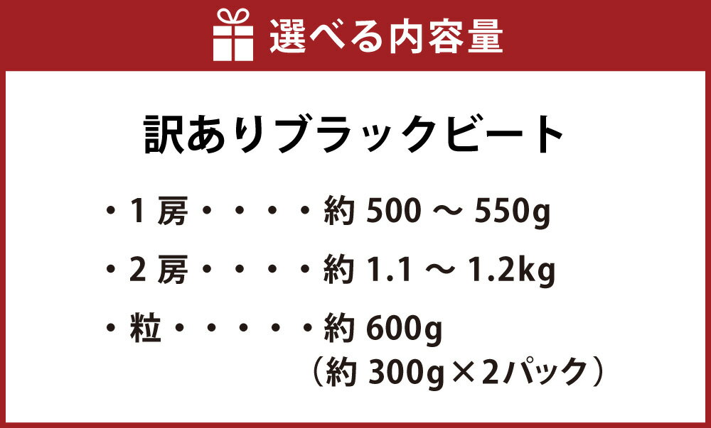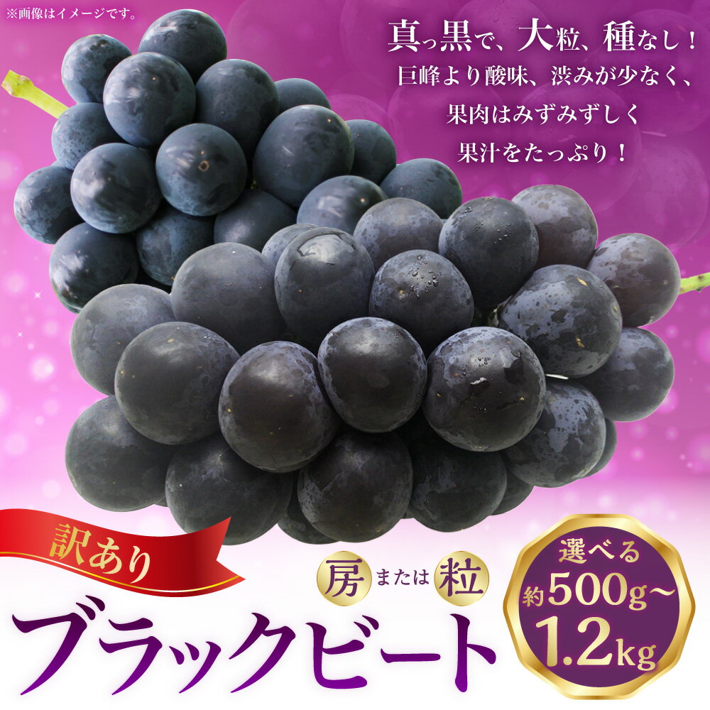 【ふるさと納税】(訳あり)ブラックビート 1房(約500~550g) / 2房(約1.1~1.2kg) / 粒 計約600g(約300g×2パック) <選べる内容量> ぶどう ブドウ 葡萄 フルーツ くだもの 果物 果実 大粒 国産 高知県産 香美市 送料無料 【2026年8月上旬~9月下旬迄発送予定】