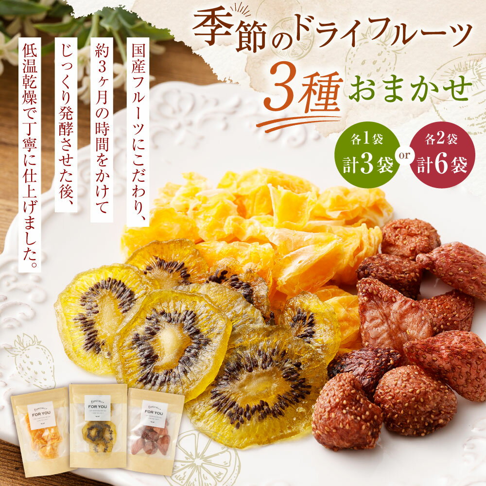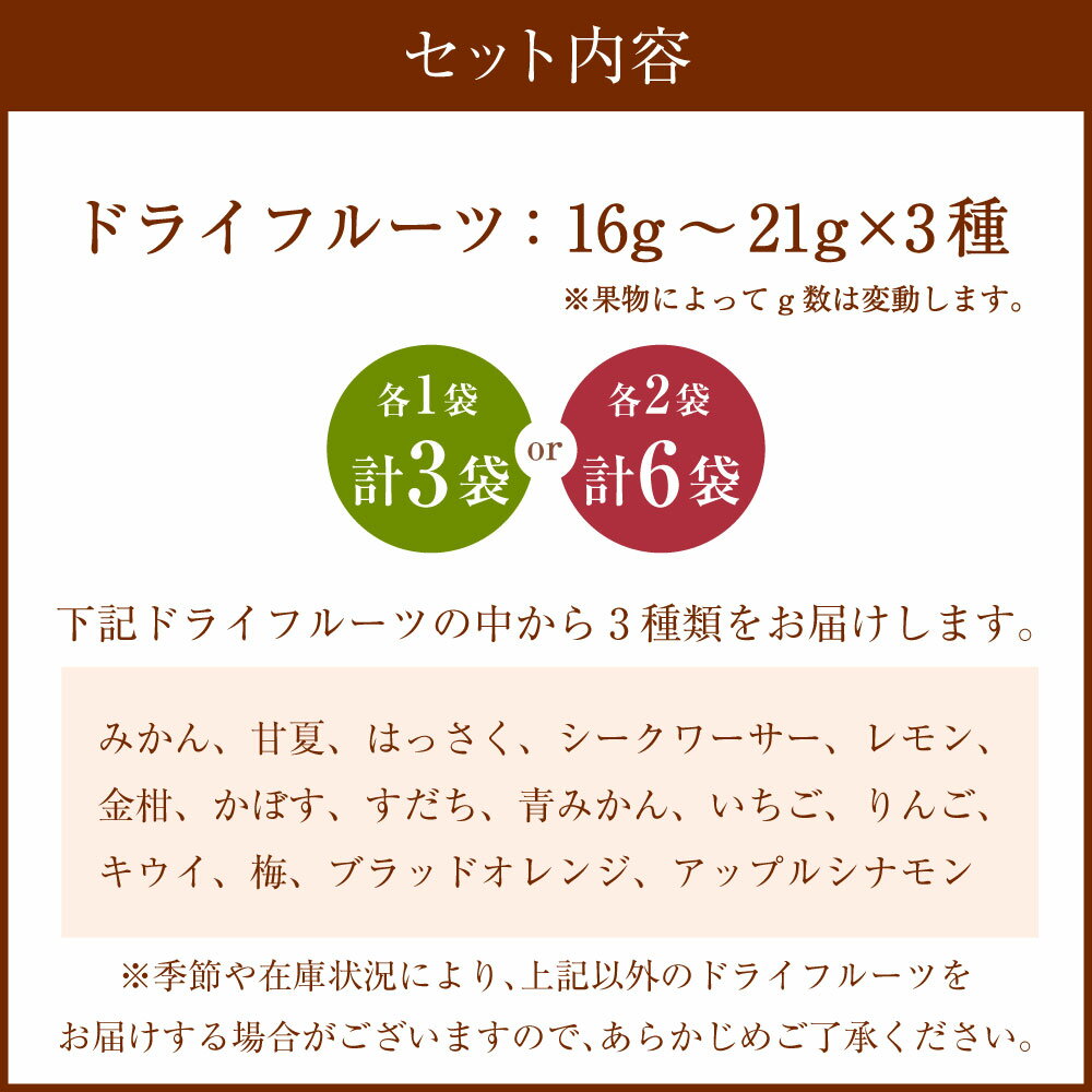 - 【ふるさと納税】【選べる容量】【NATUFULL】季節のドライフルーツ 3種おまかせセット 各1袋 各2袋 16g~21g×3種 フルーツ 果物 おやつ お菓子 柑橘 みかん 甘夏 はっさく いちご キウイ 梅 アップルシナモン りんご オレンジ 発酵 国産 冷蔵 静岡県 菊川市 送料無料