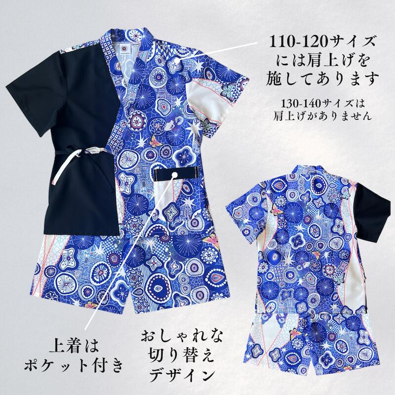 - 【ふるさと納税】[KUTANI×KIMONO] キッズ甚平 上下2点セット 夢見紋 (選べるサイズ:110-120cm/130-140cm) 浴衣 服 ギフト 石川県 小松市 018051【デクシオーラ株式会社】