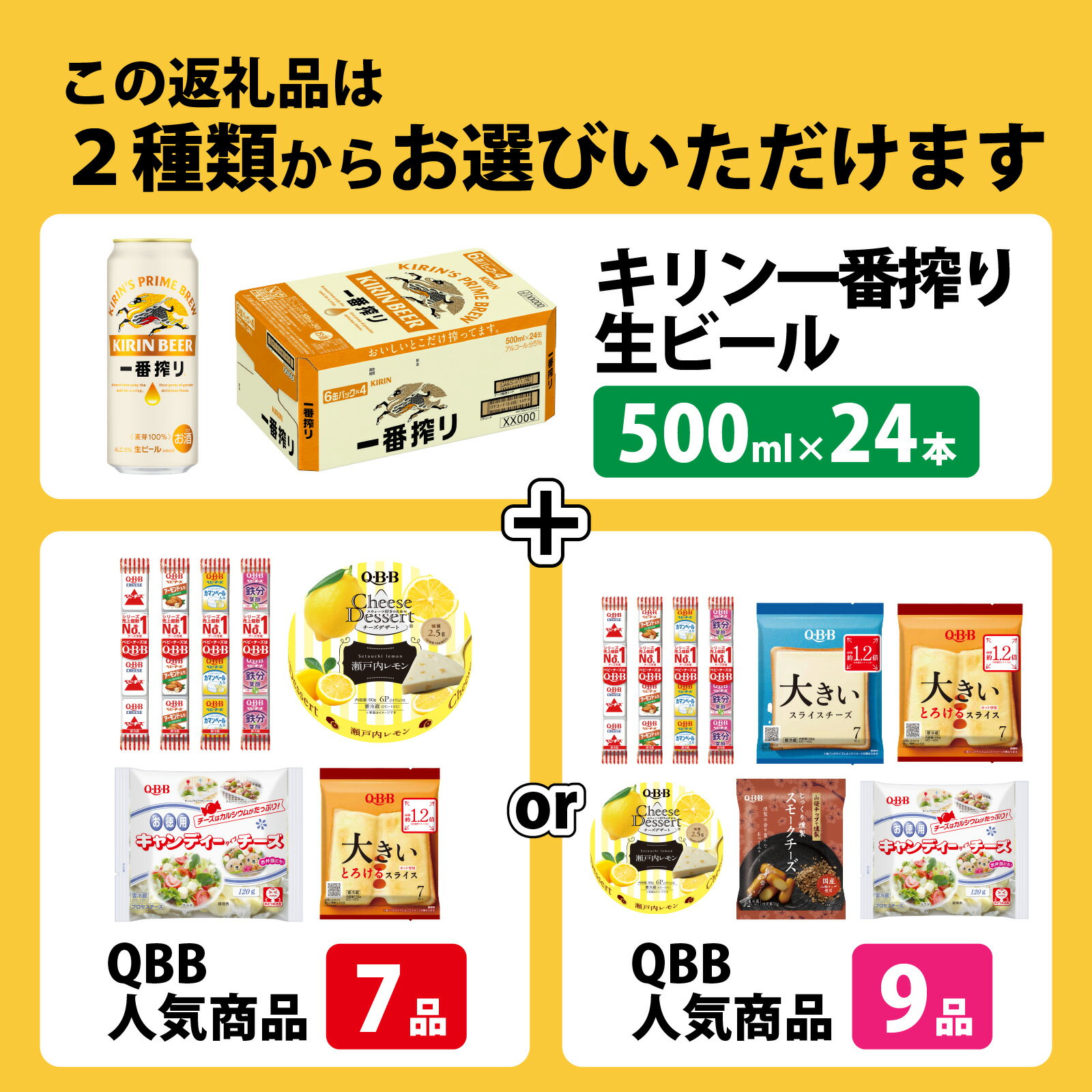 - 【ふるさと納税】【選べる内容量】キリン一番搾り 500ml 24本 と QBB商品 7品 or 9品 / ビール キリンビール キリン 麒麟 KIRIN お酒 アルコール 缶ビール 缶 生ビール 神戸 工場 チーズ おつまみ 晩酌 ギフト 兵庫県